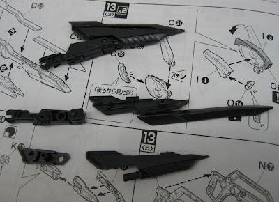 I was going to put the arms on at this point but then realized I hadn't yet constructed the shoulders. Pretty standard fare for gunpla. But what I do find interesting is...
